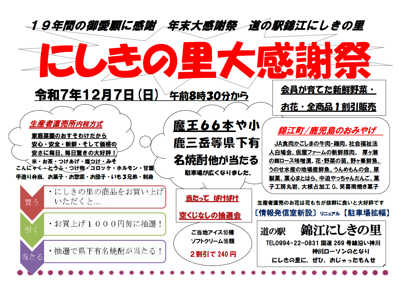 令和7年12月7日(日)に、にしきの里大感謝祭を開催します♪